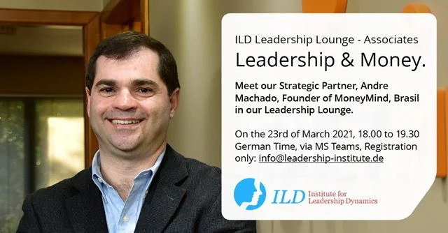 In the ILD Leadership Lounge (online) the invited guests discuss intensively on a not exactly common topic “Leadership and Money”. The starting point was the fascinating lecture by Andre Machado. Especially in these times of crisis, there were important impulses to look at these topics from new angles.